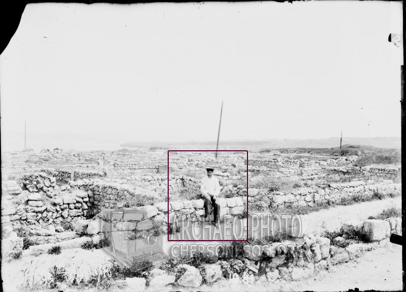 Photo "M. I. Skubetov (?) sitting in the area of the Main Street"