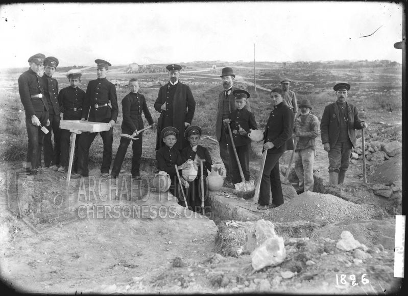 Photo "R. Kh. Leper with gymnasium students on the excavations of the necropolis near Karantinnaya Bay"