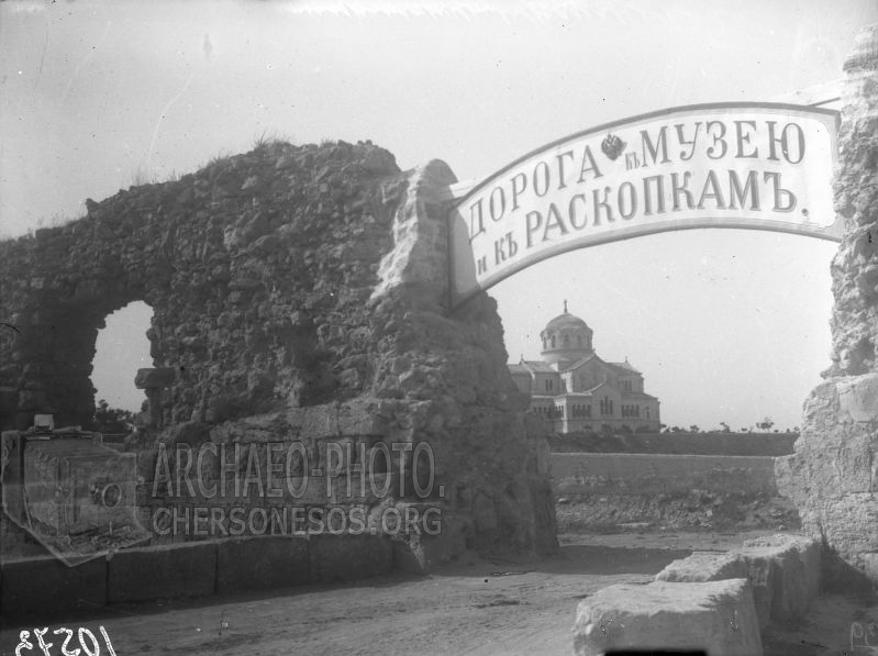Photo "A view of the breach in the ancient fortification wall where the entryway to the ancient city was arranged and the road went to the museum"
