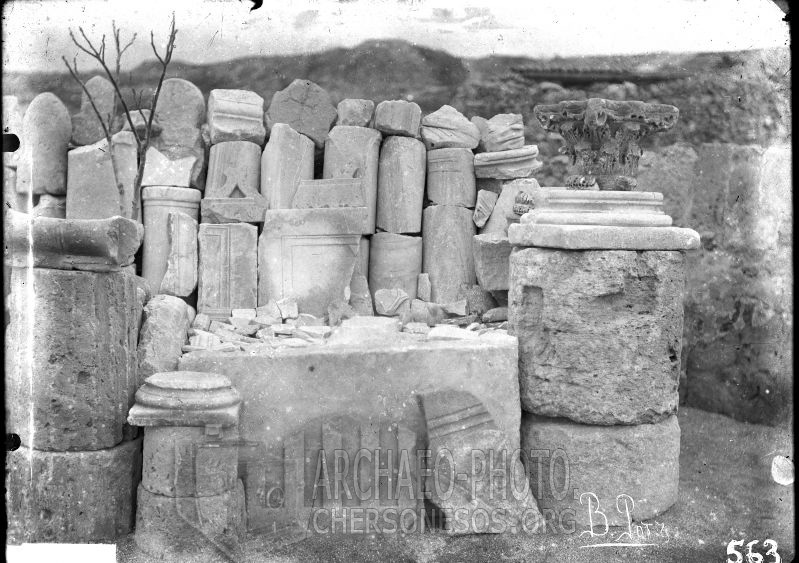 Photo "Marble and limestone architectonic members in the museum courtyard"
